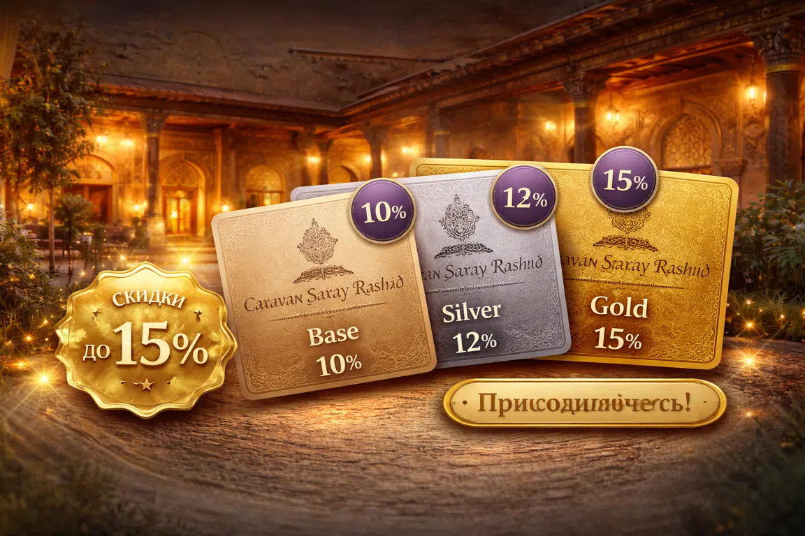 Become a member of the loyalty program of the Caravan Saray Rashid Hotel and get favorable discounts on accommodation in Bukhara. The more often you stay with us, the more benefits and the lower the cost of your future bookings.